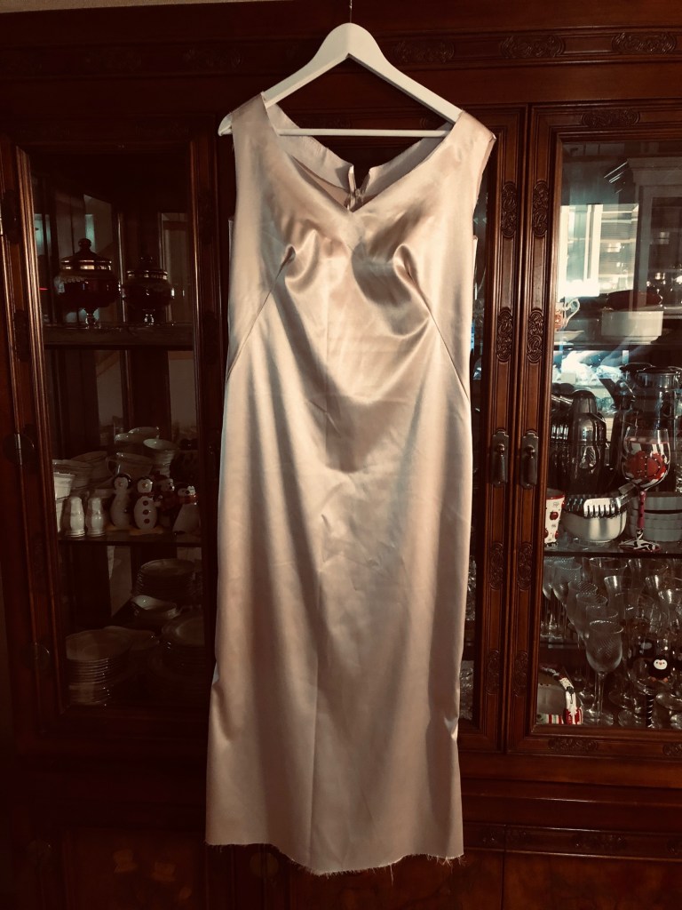 I am encouraged by my progress. I don’t think it looks like much, but I have time. When I got married before, I was engaged on June 12 and our wedding was November 30. I don’t remember exactly when I finished the dress. Our wedding was the weekend after Thanksgiving and I’m pretty sure I was finished with the dress a few weeks prior. We were working on details unrelated to my dress the last weeks before the wedding. We had a groomsman back out at the last minute and had to get a tuxedo together for replacement groomsman on Friday after Thanksgiving, so it was a bit of a frenzy. Things happen. I didn’t want my dress to be finished right before I walked down the aisle. And it won’t be this time either! Also, at this point, if I wanted to start over, I could — not that I want to buy all new material for the project, but the satin for the “slip” is really the first stage. The downside would be putting in that zipper again!
