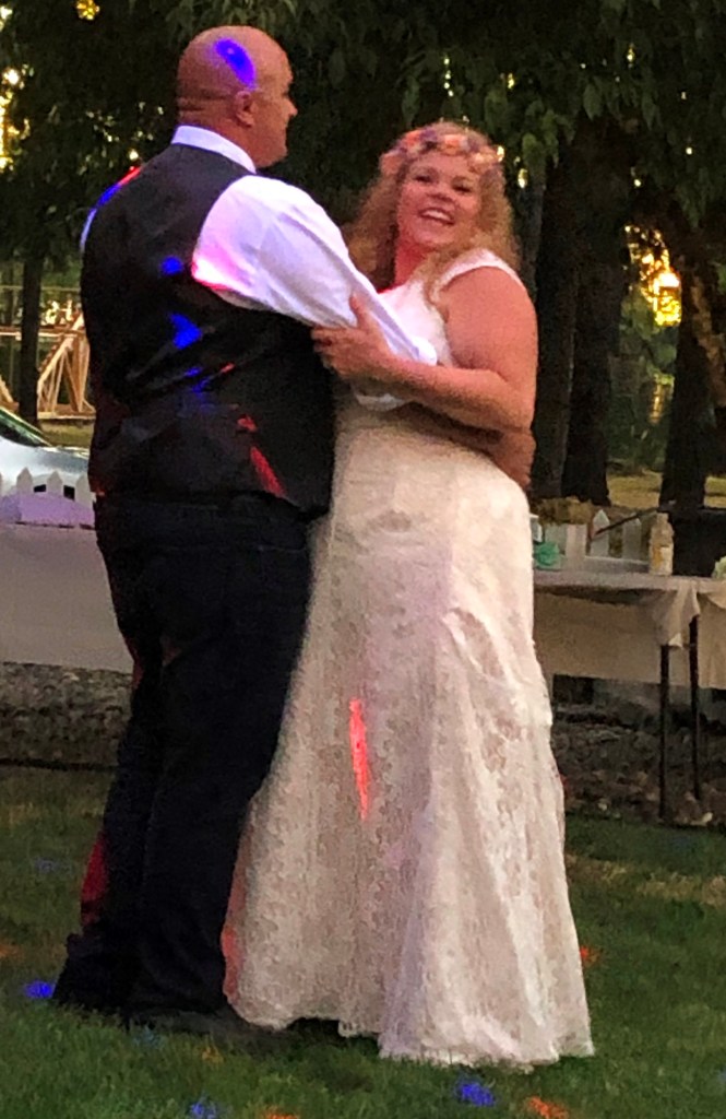 When we got to the steps leading up to the mini-stage where I met Mike, I barely remember walking — I was floating, I guess! At least I didn’t trip while I was floating. Or step on the front of my dress. I made it and our officiant, Reverend Lannie (as he is known now after getting his ordination), began his talk. I barely remember it too, except somehow, someway, he ended up skipping over my song and heading straight into Mike’s top-secret song, Extreme’s When I First Kissed You. My song was Ed Sheeran’s Thinking Out Loud (and it wasn’t top-secret). No matter. I loved the fact that the Rev was so amped up and excited about our story that he didn’t follow his own script. I LOVED THE STORY. At any rate, he mixed up the vows and the rings and we kissed and that was it! Suddenly, we were married in front of friends and family. Best. Wedding. Ever.